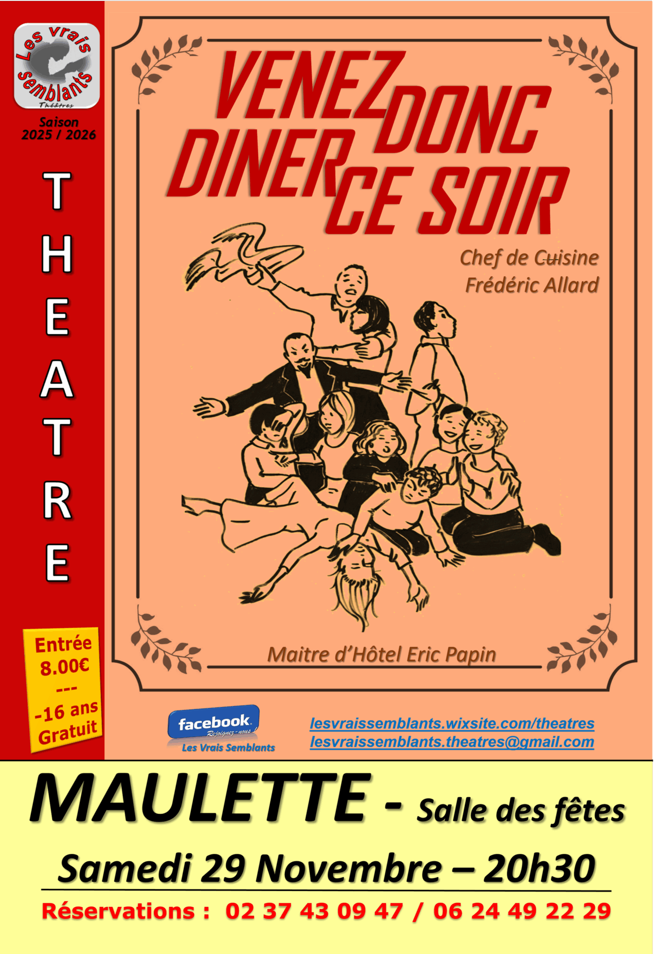 🎭 Spectacle à Maulette : “Venez donc dîner ce soir” – Samedi 29 novembre à 20h30